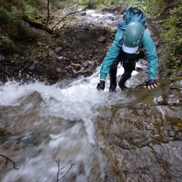 (春嶽湧水、ここで沢装備に...寒くてカッパを着ました)